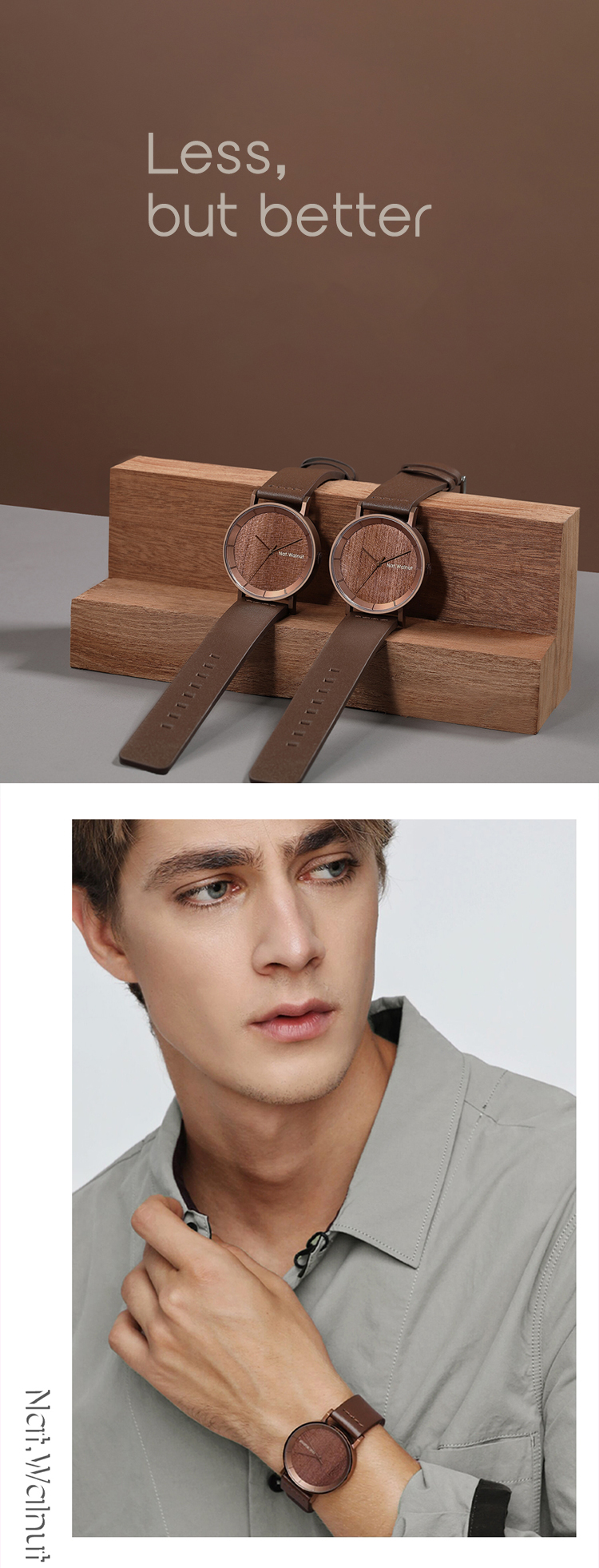 Walnut. A niche wooden watch with a simple Japanese-style retro design. It's a creative wooden men's watch